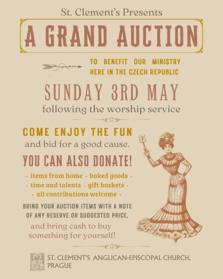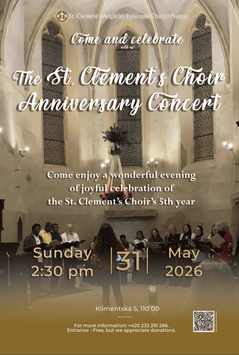 St. Clement’s belongs to the worldwide Anglican communion of Churches within the Church of England Diocese in Europe, and whether you are a tourist waiting for your Sunday afternoon flight home or the return to your river cruise, a short term resident here on assignment or a long term Prague veteran, Baptist, Methodist, Catholic or indeed any other Christian denomination, whether you are a devout and committed Christian or just curious about the power of Christianity to change your life, we invite you to come and join us any and every Sunday at 11.15am at St. Clement’s church, Klimentská 5, Prague 1 to enjoy Church of England Sung Eucharist together with hymns both traditional and modern, accompanied by our fabulous organ and choir.