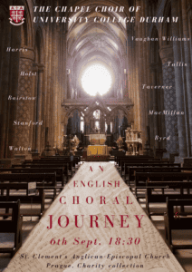 Wednesday September 6th 2023 – Evensong (1662 BCP) followed by a concert by the Durham University College Chapel Choir. We were privileged to host the University College Chapel Choir from Durham University in the UK. University College, known lovingly as “Castle,” is the oldest of Durham University’s Colleges and was founded in 1837, shortly after the foundation of the University itself in 1832. The College is fortunate to possess two historic chapels: the Norman Chapel dating from the 11th Century and the Tunstall Chapel, established in the 1540’s, which was used by the Prince Bishops of Durham as their private chapel. The Choir is an auditioned ensemble of sixteen choral scholars and is regarded to be one of the finest choirs in the North East of England. The Choir has a busy schedule, leading weekly services of Evensong, Eucharist and Compline in Durham Castle’s two chapels as well as numerous special services, concerts, recordings and tours. On the 6th of September Evensong at St. Clement’s using the 1662 Book of Common Prayer was followed by a remarkable concert including choral works by Thomas Tallis, Henry Purcell, William Byrd, Charles Wood, Charles Villiers Stanford, and Ralph Vaughan-Williams.