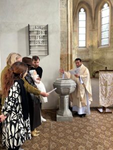 Sunday November 3rd 2024 at 11am – Sung Eucharist for All Saints Day and Christening. Our Christening is a key day in the life of every one of us as Christians. As one of the most important Sacraments in the Anglican faith, our Christening is the moment when we receive our Christian name and our Godparents commit to helping us and our parents in ensuring that we grow up with our faith as our guiding star. It is also the moment when we are baptised and welcomed into God’s church. For us at St. Clement’s being able to welcome a new christian soul into our midst is a source of great joy and a true privilege, and so it was today, when we welcomed the beautiful Monturayo Emma into our St. Clement’s family. As you can see she was keen to reach out and show her appreciation of the Reverend Nathanial’s efforts!