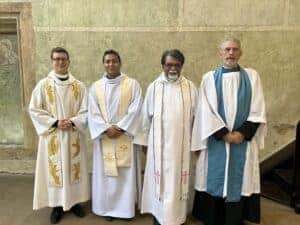 Sunday 26th September 2023 – Licensing of Rev’d Nathanial Nathanial and Reader John Noonan. It does not seems like 5 years since Nathanial joined us, but it is. As such he required re-licensing, and we were happy to welcome our Archdeacon back for the Service. In addition we were overjoyed to welcome back John Noonan as our Reader after a (short) retirement, and an added bonus was to see the Rev’d Lea Williams visiting us from Brno! Here is the team assembled after the Service. From left to right the Rev’d Lea Williams, the Rev’d Nathanial Nathanial, our Archdeacon the Venerable Dr Leslie Nathaniel, and Reader John Noonan.