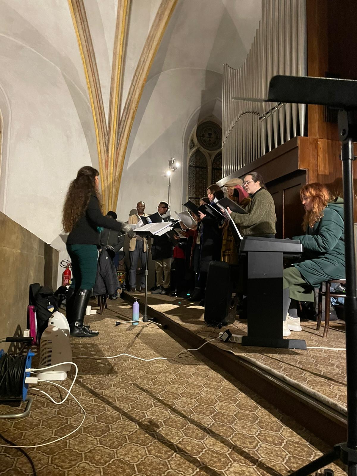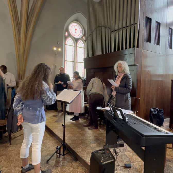 The choir meets for rehearsal on Wednesdays from 6 – 8 pm at Klimentská 18, 1st floor, and for the Sunday Service every Sunday at 10:45 am.